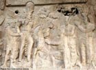 در دو سوی سنگ نگاره مجلسهایی در چهار ردیف در نظر گرفته شده است كه در آنها بلند پایگان ایرانی، اسیران رومی و حاملان غنیمتهای جنگی هریك به طور جداگانه به نمایش در آمده اند و روی هم رفته چشم انداز شلوغی را پیرامون مجلس اصلی فراهم آورده اند .