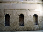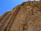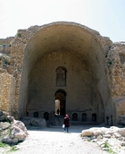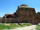 | دیوارهای نگه دارنده ایوان مركزی در بعضی جاها بیش از چهار متر پهنا دارند. ایوان به سالن مركزی متصل است كه آنهم در دو طرف دو سالن دیگر دارد و همگی سقفهای گنبدی بلندی دارند. معماری این بنا همانند معماری حمام كاراكالا در روم استكه در قرن سوم میلادی ساخته شده است سالن مركزی یك شاه نشین كوچك است و تزیینات دیوارهای آن مانند تزیینات تخت جمشید است. . گنبد بلند این سالن از آجر ساخته شده است.مانند آنرا میتوان در كاخ سروستان مشاهده كرد و میدانیم در تخت سلیمان نیز وجود داشته و این نوع معماری پس از اسلام وارد طرح مساجد شد و در آنجا به كمال رسید |