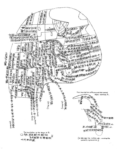 احتمالا یک مدل آموزشی بوده. این شکل یک جگر گوسفند را نشان می دهد که به 55 قسمت تقسیم شده و توضیح داده شده اگر هر یک از این قسمتها دارای لکه باشندف نشانه چی هست. بابل - 1900 تا 1600 پ م بریتیش موزه - تصویر حمید صدقی نژاد