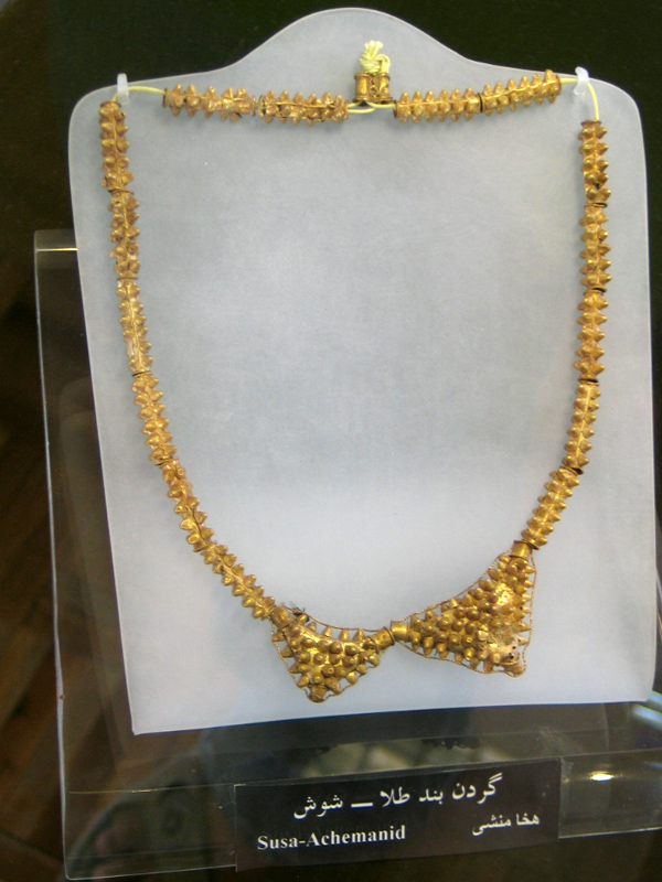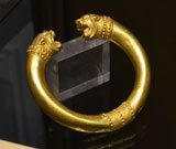 یكی از برجسته ترین زیور آلات این دوره دستبندهایی است كه انتهای آنها به دو سر شیر ختم می شوند و با زیور آلات كوچك و قرص مانندی به شكل سر حیوانات و پرندگان و نقوش هندسی تزئین شده است . این آثار حاكی از آن است كه پارسیان در عهد هخامنشی به ابزارهای زرین و سیمین و مفروغی علاقه داشته و بخشی از هنر خود را در این راه به كار می برده اند. |