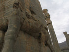 درگاههای غربی هرکدام توسط دو گاو نر بالدار نگهبانی می شوند.این نوع گاوهای بالدار از هنر آشوری بر گرفته شد وبا هنر هخامنشی در هم آمیخت .این گاوها هر کدام چهار پا دارند و ریشی بلند آراسته شده به گل دوازده پر و غنچه نیلوفر آبی جلوی سینه آنها را پر کرده است.داخل سالن سنگ نبشته ای به سه زبان فارسی باستان ایلامی وبابلی حک شده است