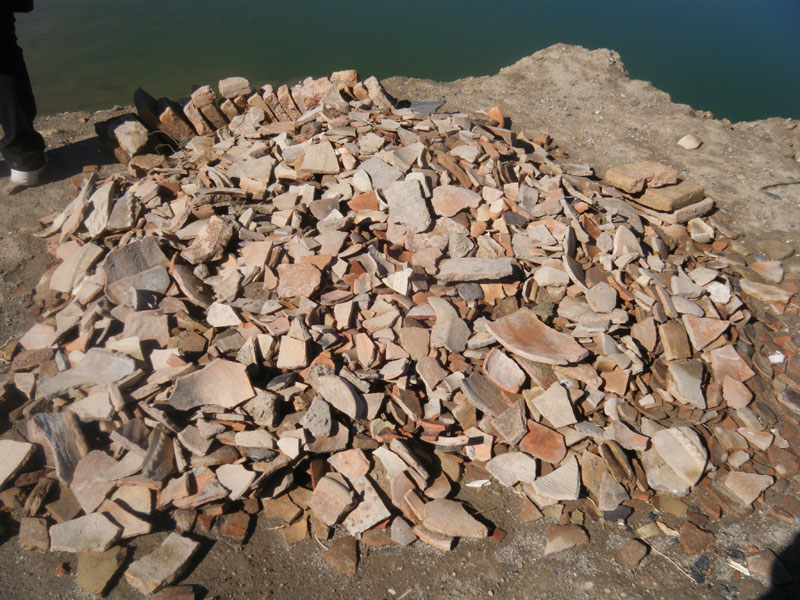 انبوه سفالهای یافت شده در تپه پیش از دسته بندی