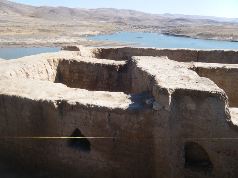 تپه گونیپان در حین حفاری فصل پنجم- آثار معماری مادی-سد در حال آبگیری