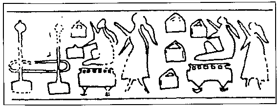 مهر های مكشوفه از شوش پیش از تاریخ-4000 پ م -فعالیت زنان در كنار تجهیزات بافندگی