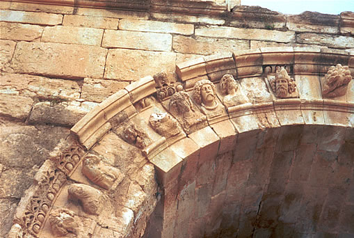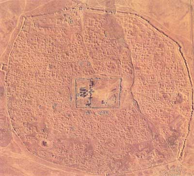 معبد الحضر در كنار فرات قرار دارد و بر خلاف بقیه لبنیه بین النهرین از آجر و خشت ساخته نشده بلكه از سنگهای حجاری شده ساخته شده است. بخش عمده معبد دو ایوان دارد كه قرینه همدیگرند. درآغاز بنا با آجر ساخته شده است ولی بعدا تغییراتی در آن داده اند و سنگ آهك جای آجر را گرفته است و ایوانهای آجری مبدل به تالارهای طاق ضربی شدند. بعدها نیز دو ایوان دیگر اضافه شده و معبد به شكل چهار ایوانی تبدیل شده است. نمای معبد با نیم ستونهای گرد برجسته و طاق نماها آرایش شده است. در آیین بابلیها این معبد به خدای آفتاب به نام شمش تقدیم شده است . این كاخ یكی از بناهای مهم دوره اشكانی در بین النهرین است . در سده دوم میلادی اشراف الحضر مجسمه های مرمرین اندازه پیكر خویشتن در پرستشگاه های شهر پیرامون معبد خورشید میگذاشتند. این شهر در 240 میلادی به یكباره تباه شد و مجسمه هایش به دست ما رسید. این مجسمه ها از روبرو تراشیده شده اند.یك نقش برجسته نیز كه با رنگهای روشن نگاشته شده خدایی ریشو در جامه اشكانی را نشان میدهد كه سگس سه سر به همراه دارد . در دست او یك تبر دو سر قرار دارد و پرچه الحضر در كنار او است. در زمینه هم مارها و كژدمهای نمادین دیده میشوند |