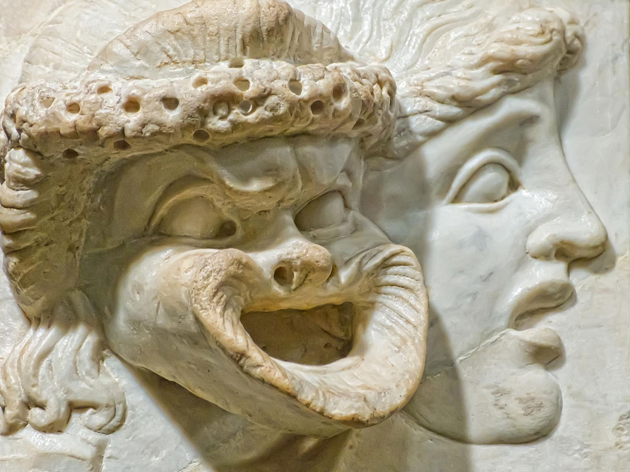 سنگ مرمر تراش خورده - نشانگر ماسکهای کمدی نمایش