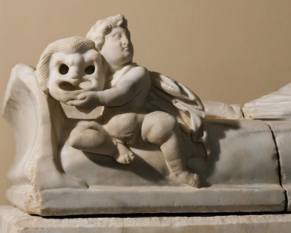 اروس و یک ماسک تئاتر- سنگ مرمر سده سوم میلادی - محل نگه داری Rome, Capitoline Museums, Palazzo dei Conservatori.