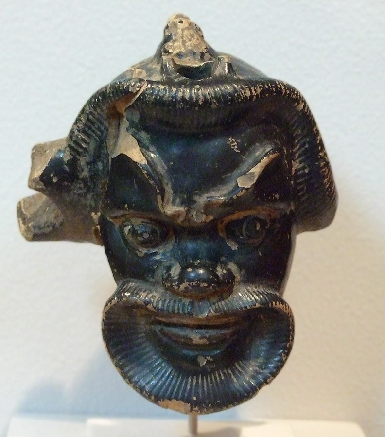 Fragment of a Black-glazed Vase in the Form of a Comic Actor's Mask