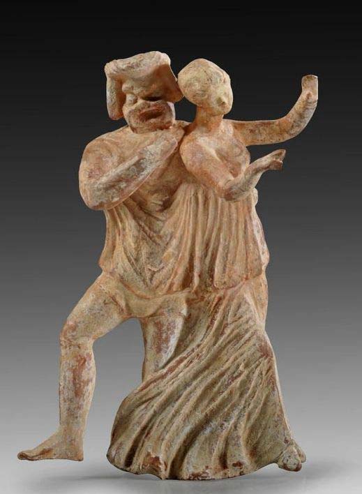 فلیاکس که از ماسکش شناخته می شود به همراه دختری در حال رقص ایت. یافت شده از جنوب ایتالیا