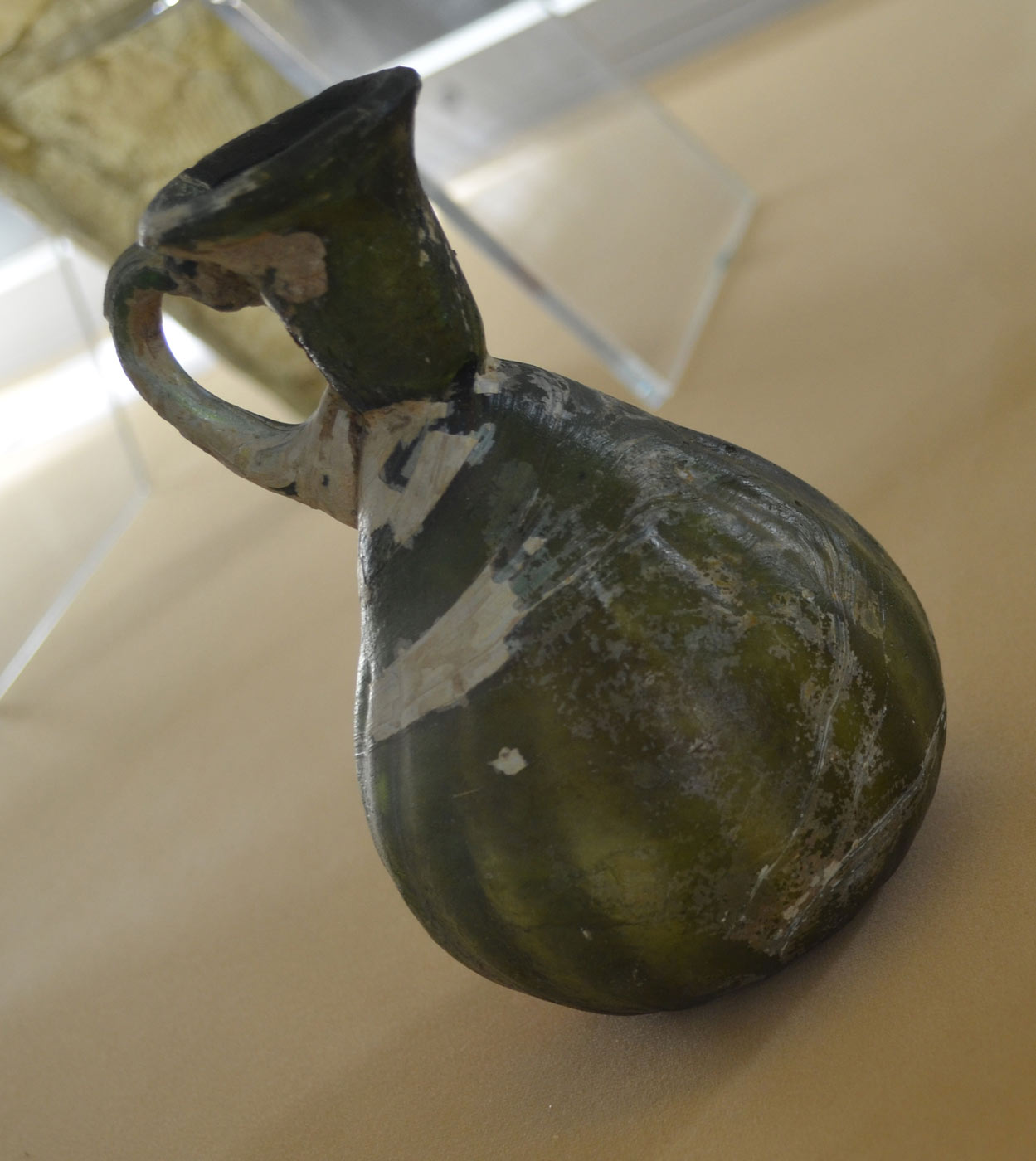 ظرف شیشه اس اشکانی- سرخه دیزه- موزه ملی ایران