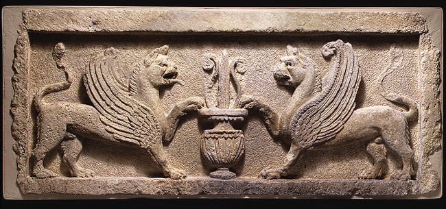 هنر دوره اشکانی- نقش بالای در یك بنا - مكشوفه در هترا - قرن 2 میلادی