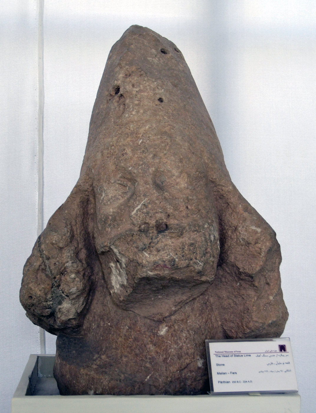 سر مرد از جنس سنگ آهک- قلعه نو ملیان فارس- موزه ملی ایران