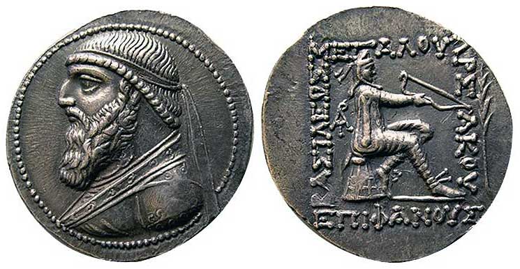 مهرداد دوم پس از پدر به شاهی رسید. او بر سكاها پیروز شد و بلخ را هم به شاهنشاهی خود افزود. او بر ارتوازد نیز پیروز شد و ارمنستان را به زیر سلطه خود در آورد.همچنین بر قسمت بزرگی از بین النهرین تسلط یافت.در سال 92 پ م سولا نماینده سنای روم به كرانه فرات رسید و با اربازو سفیر مهرداد روبرو شد.آنها با هم پیمان صلح بستند |