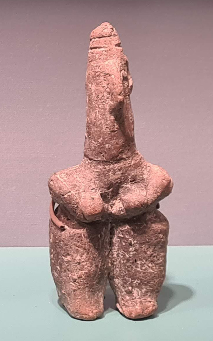 مجسمه زن با رون های بزرگ مشابه مجسمه های سفالی املش- محل کشف نامعلوم در گیلان - 1200 تا 700 پیش از میلاد