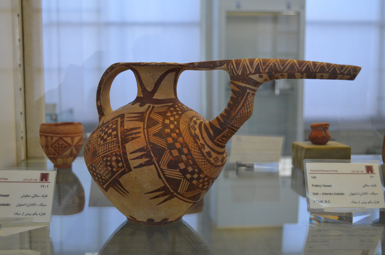 ظرف سفالی لوله منقاری منقوش- سیلک - هزاره اول پیش از میلاد – موزه ایران باستان