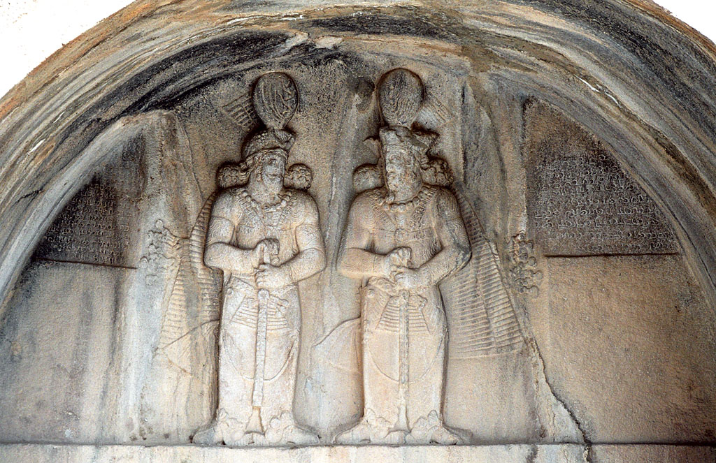 شاپور دوم در سمت راست در تاق بستان در کنار شاپور سوم در سمت چپ